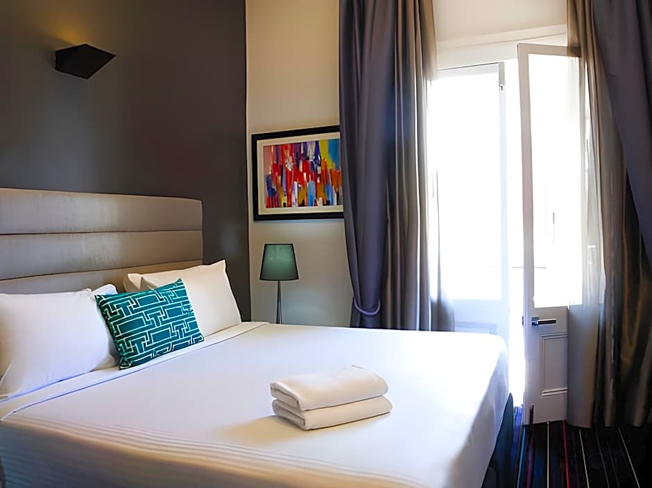 The balcony king room offers ceiling-high glass doors, an opening to a balcony looking out over the tree-lined Challis Avenue. These rooms feature a seating area, digital LCD TV, fridge and private bathroom.